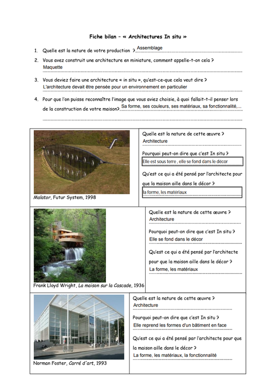 Demande : Dans le document ci-joint, choisir une image d'un environnement et fabriquer une architecture en lien avec cet environnement.