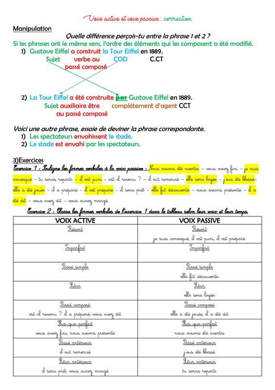 Correction Exercices voix active/voix passive