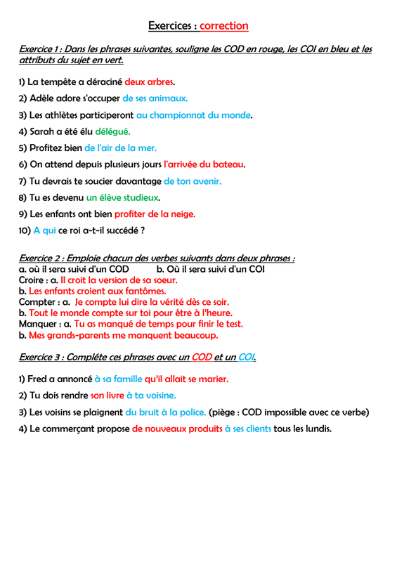 Exercice Complement Du Verbe Correction