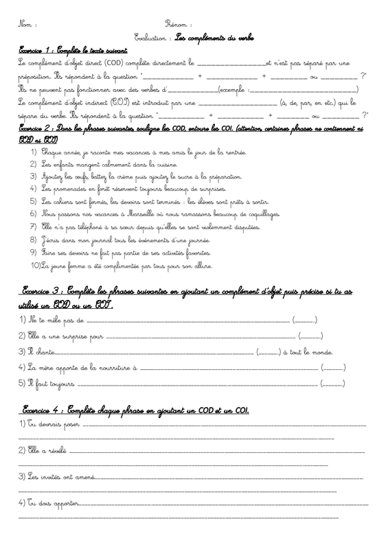 Évaluation Les compléments de verbe